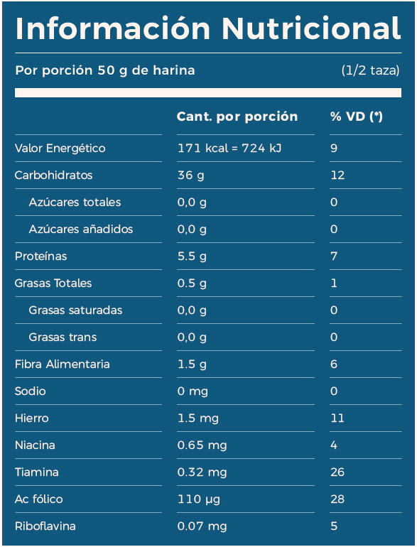 Harina de trigo 000 enriquecida según ley 25630, complejo vitamínico (*).