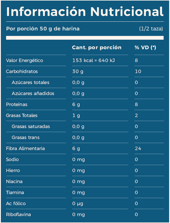 * % Valores diarios con base a una dieta de 2000 Kcal u 8400 Kj. Sus valores diarios pueden ser mayores o menores dependiendo de sus necesidades energéticas
